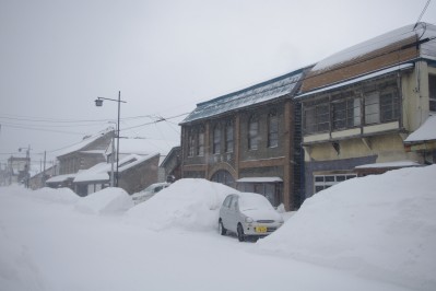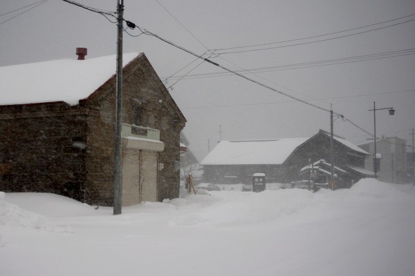 【1】2階建ての旅館や商家が並ぶ駅前通り。この家は「最北の造り酒屋」といわれる国稀酒造です。 |