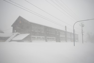 ![]() 1936(昭和11)年築の増毛小学校。道内唯一、現役の戦前木造校舎 |