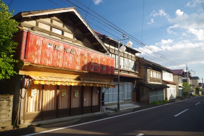【1】米川では明治以降に事業や商業を始めた家が多く、国道沿いに商家が連なります。この洋風建築は、かつて個人が営業した郵便局でした。 |
