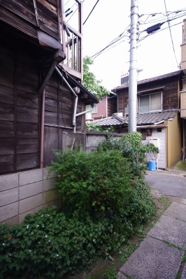 慶應義塾のお膝元、三田。その北の外れ、古川の岸辺に、旧三田小山町はあります。路地裏に木造家屋が連なる町並みですが、2014年6月に再開発事業の概要が発表されました。この風情ある町並みも、じきに消えます。 |