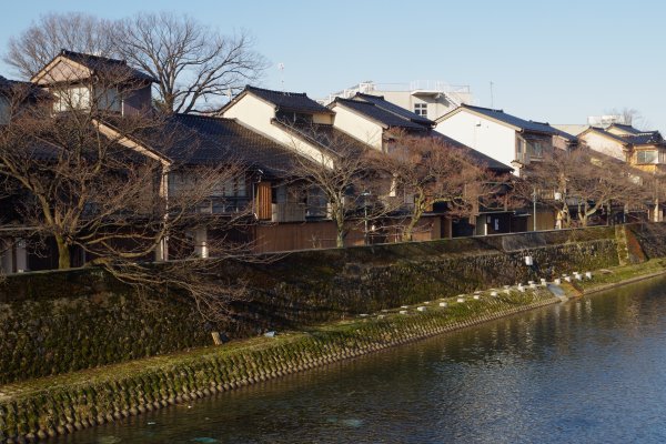 ![]() 浅野川畔に茶屋が連なる |