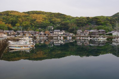 | 平戸島の北西海岸、三方を山に囲まれた薄香湾の南に、さらに袋状にくびれた天然の良好があります。そこにある漁村が薄香で、地形に合わせて屈曲する道沿いに古い木造民家が並んでいます。 | ![]() 薄香漁港 |